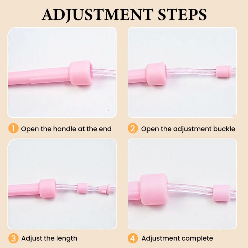 Verkort het touw eenvoudig zodat het geschikt is voor elke lengte. Dit zorgt voor een perfecte, struikelvrije springtouwervaring voor opgroeiende kinderen (3–12 jaar) en biedt langdurig gebruik en waarde voor het hele gezin – geen noodzaak om steeds een nieuw touw te kopen!